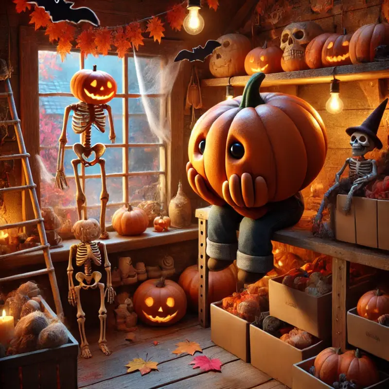 Am dritten Tag spürte Grimmo eine Aufregung in der Luft. Die anderen Dekorationen um ihn herum wurden nach und nach von den Regalen genommen und sorgfältig verpackt. Die Werkstatt war voller Leben – die Halloween-Saison hatte begonnen, und die Kunden bestellten fleißig die einzigartigen Dekorationen aus dieser wunderbaren Werkstatt. Jedes Detail zählte, und Grimmo wusste, dass auch er bald an der Reihe sein würde.