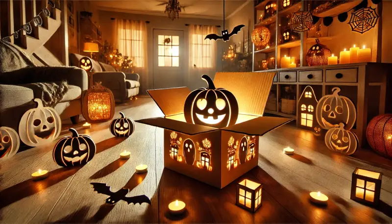 Als die Kiste geöffnet wurde, blendete Grimmo das warme Licht des Hauses. Er erblickte ein gemütliches Wohnzimmer, das mit liebevoller Halloween-Dekoration geschmückt war. In der Ecke stand ein großer, leuchtender Kürbis, und an den Wänden hingen kleine Fledermäuse und Geister. Kinder lachten und liefen umher, während die Erwachsenen Grimmo bewunderten.
