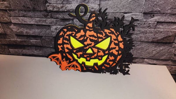 Beschreibung: Diese Halloween Kürbis Dekoration besteht aus 4 Schichten hochwertigem Sperrholz und schafft einen auffälligen 3D-Effekt. Die Dekoration mit Kürbismotiv und lebendiger Gravur verleiht ihr eine gruselige und markante Atmosphäre, die perfekt in Ihr Halloween-Dekor passt. Ideal als Wanddekoration oder Tischakzent, um die Feststimmung zu unterstreichen.
