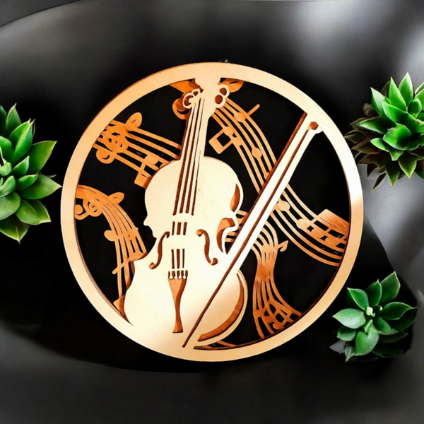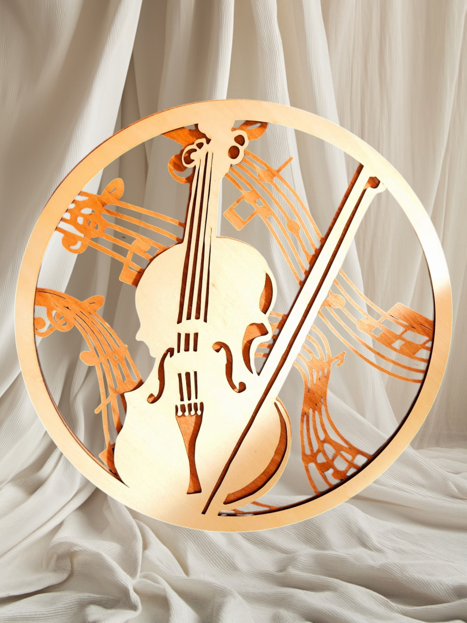 Beschreibung: Dieses dekorative Wanddekor mit einer Geige und Noten verleiht Ihrem Interieur einen eleganten und musikalischen Akzent. Gefertigt aus 3 mm Sperrholz. Das Design kombiniert das klassische Instrument mit fließenden Noten und schafft ein raffiniertes Kunstwerk. Perfekt für Zuhause, Konzertsaal oder Musikstudio – dieses Dekor bringt kreative Energie und ästhetische Schönheit in den Raum.